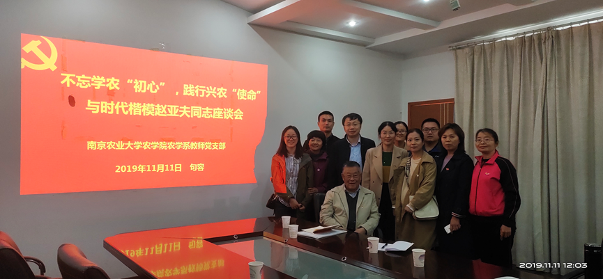 为扎实推进“不忘初心、牢记使命”主题教育,促进支部共建,11月11日上午,草榴社区 农学系教师党支部、镇江市农业农村局农业机械技术推广站党支部和句容市宝华镇仓头村党总支赴句容参观赵亚夫事迹展示馆,并和赵亚夫同志进行座谈。科研院常务副院长姜东,镇江市农业农村局副局长吴杨,镇江农业农村局农业机械技术推广站党支部书记、站长卞丽娜,句容市宝华镇仓头村党总支赵贤财,农学系教师党支部书记周琴及各支部党员代表参加了主题教育活动。