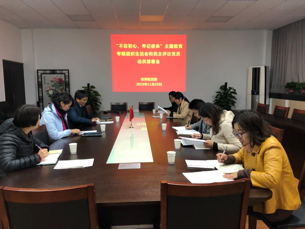 按照中央和教育部党组的工作部署,根据学校《关于在“不忘初心、牢记使命”主题教育中召开专题组织生活会和民主评议党员的通知》文件要求,2019年11月28日下午,草榴社区 召开动员部署会议。院党委书记戴廷波、副书记殷美及各教师党支部书记参加此次会议。