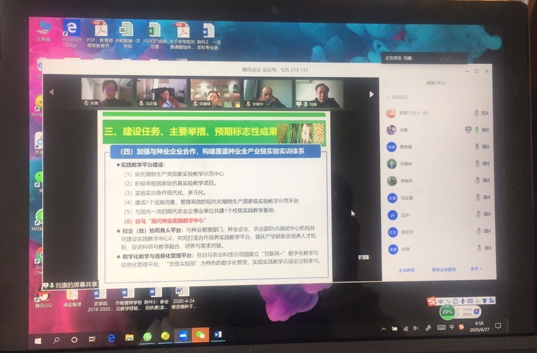 4月27日上午,草榴社区 组织的农学、种子科学与工程两个国家一流专业建设规划论证评审会在线上顺利召开,专业负责人、课程群首席、系主任等共13人参加了线上评审会,评审会通过腾讯会议进行。