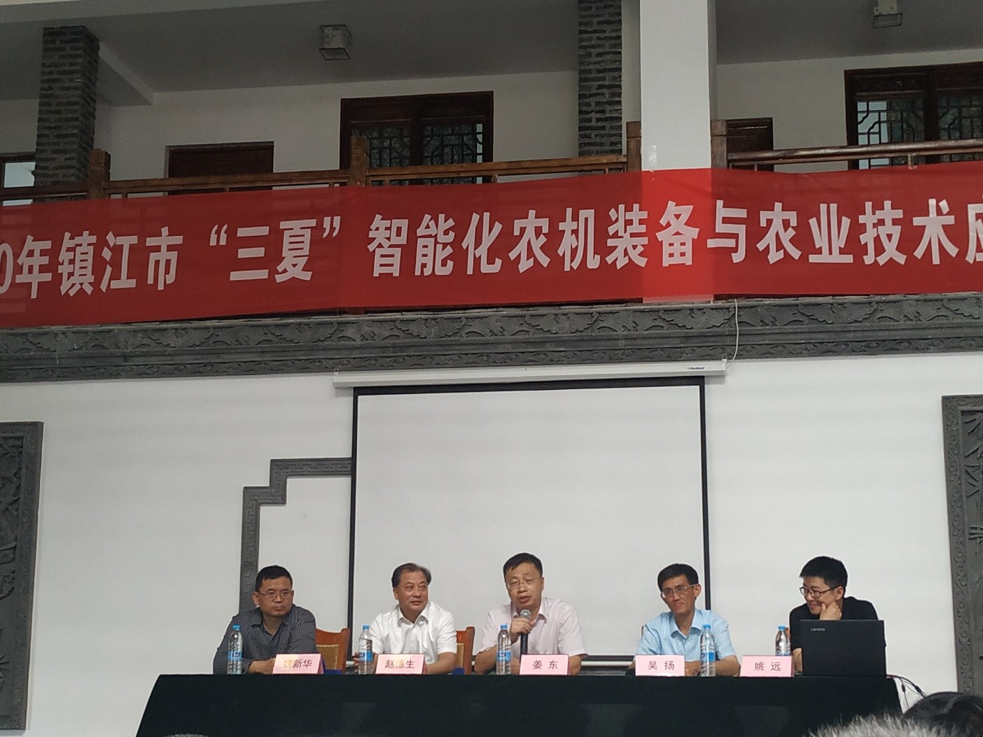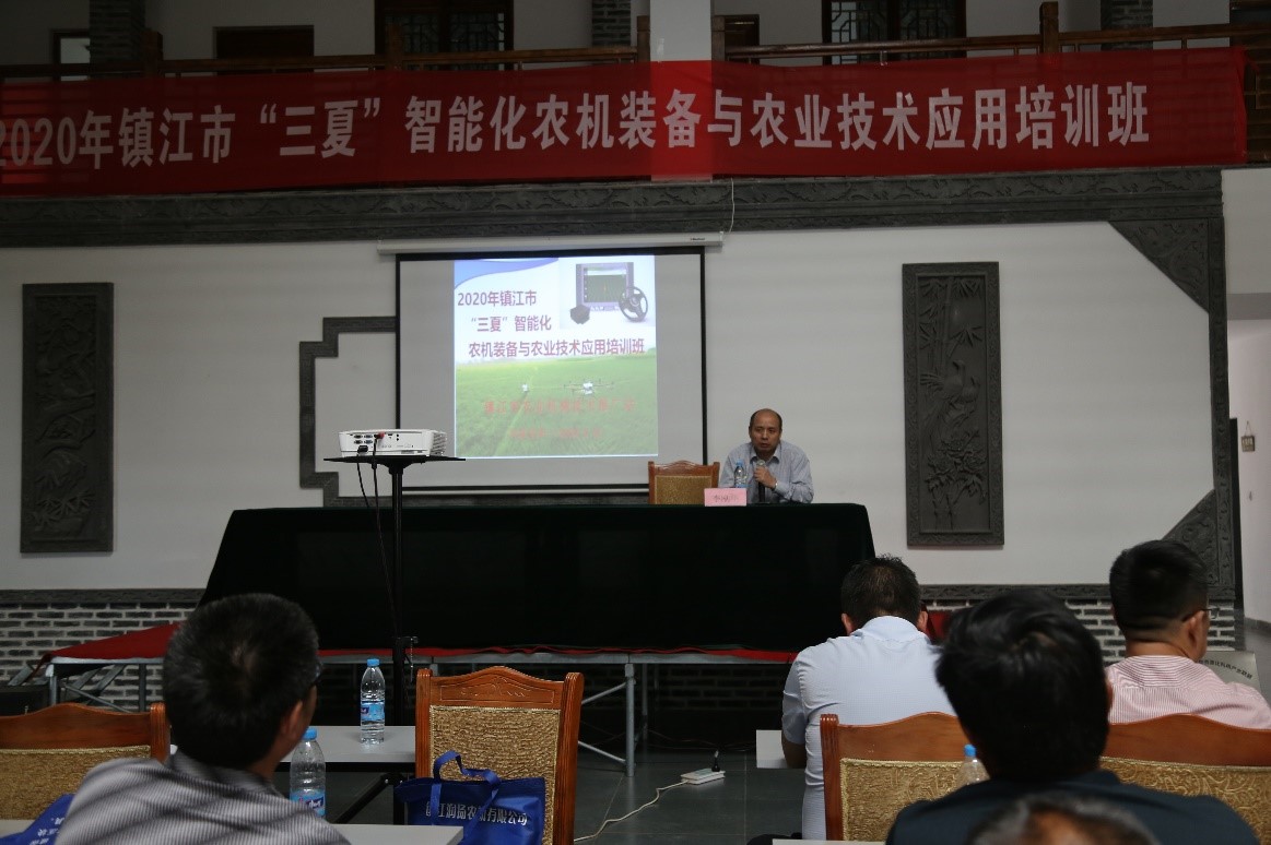 在随后开展的室内农机装备与农业技术应用培训,吴扬局长介绍了现代农业发展的现状和问题,提出无人驾驶在未来发展的前景。姜东教授介绍了草榴社区 在小麦和水稻栽培技术上和理论上的相关研究进展,提出后期开展进一步合作的相关领域。李刚华教授为现场的参会者从水稻育秧,机插秧关键技术环节和要点,以及水 稻生育过程中水分管理技术等方面进行了讲解。各位参会者都感觉收获颇丰。