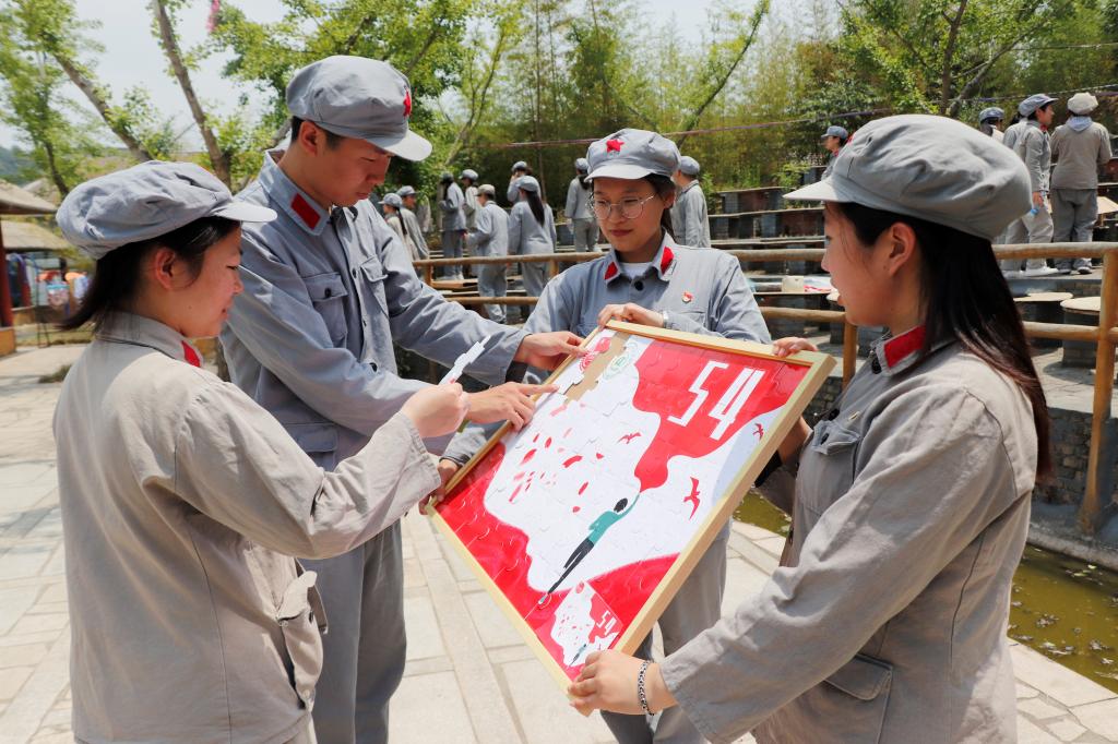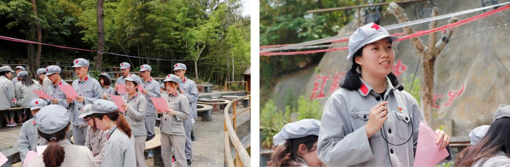 全体党员体验长征路,通过还原场景体验四渡赤水、飞夺泸定桥、翻雪山、过草地等历史过程,让同学们切身感受这一部惊心动魄、气壮山河的英雄史诗。