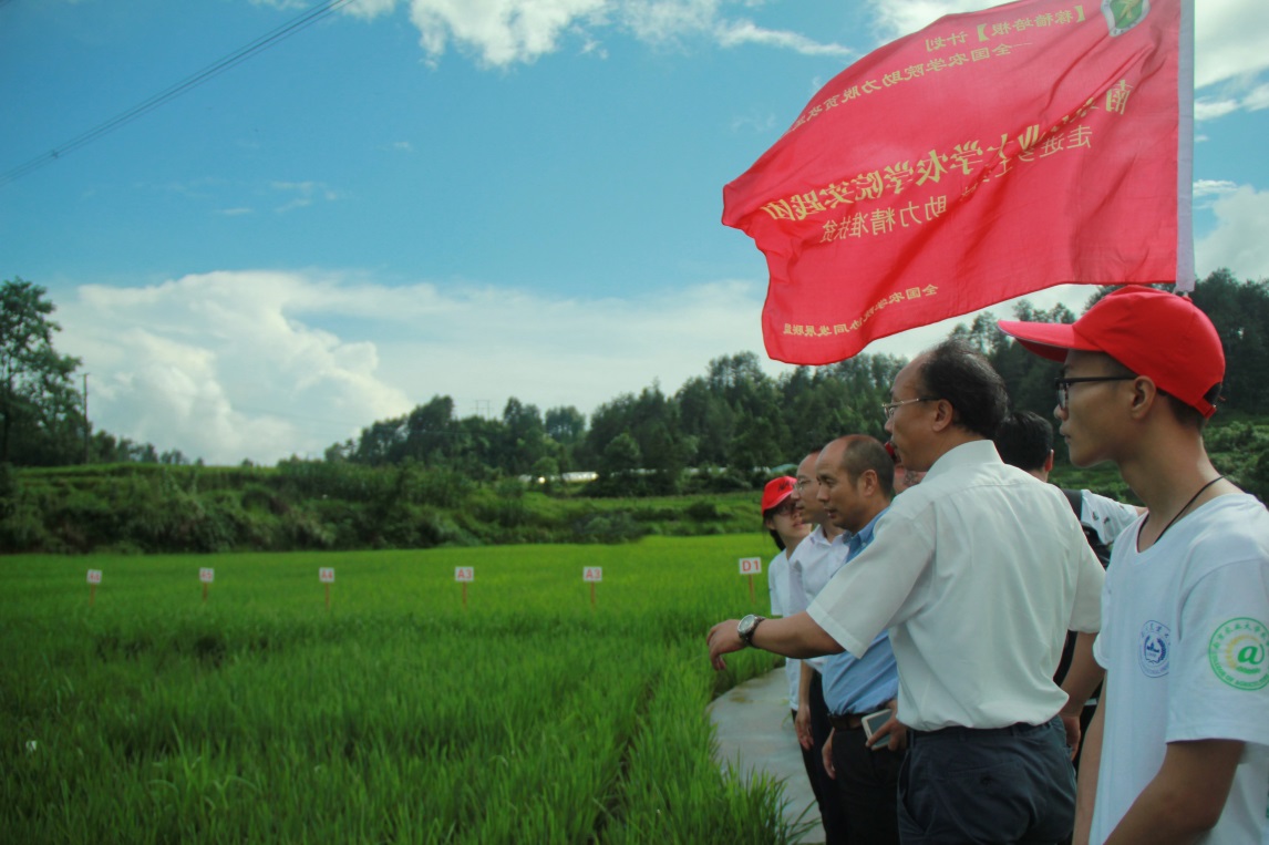 培训会后,实践团队在丁艳锋校长带领下前往麻江县锌硒米优质高产示范基地进行实地考察,深入了解了锌硒米种植过程中遇到的问题,查看了从我校引进的18个水稻品种在当地的生长情况及抗性和育性,并向农户了解了水稻田间种植的实际情况。随后,实践团队跟随章建伟博士对高枧村周边地区的水稻种植情况进行了实地考察。