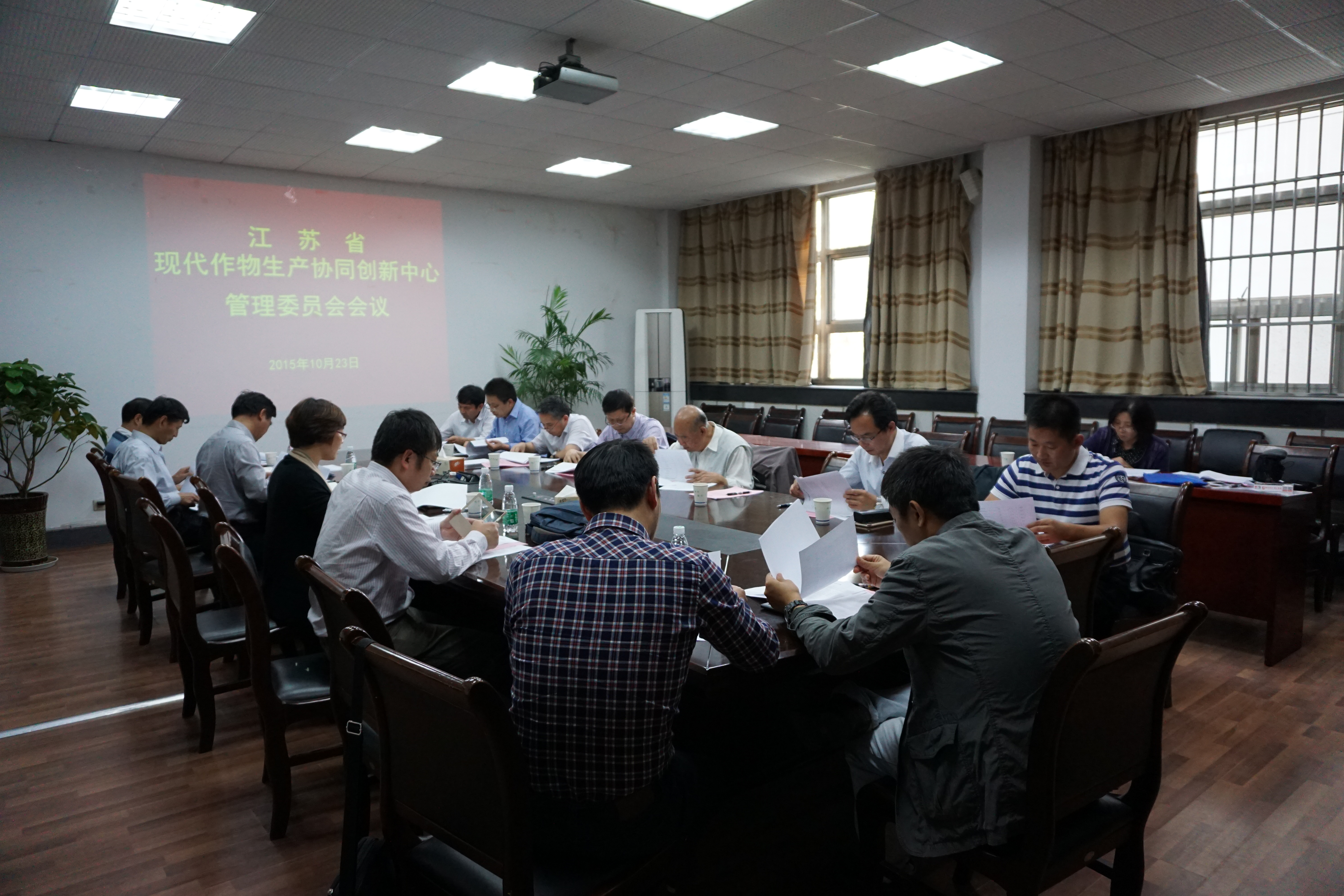 2015年10月23日,“江苏省现代作物生产协同创新中心”(以下简称“中心”)管理委员会会议在草榴社区 召开。中心管委会委员草榴社区 盖钧镒院士、江苏省农科院科技处处长孙洪武等12名校内外委员出席会议。会议由中心管委会副主任、中心管理办公室主任、草榴社区 院长朱艳主持。