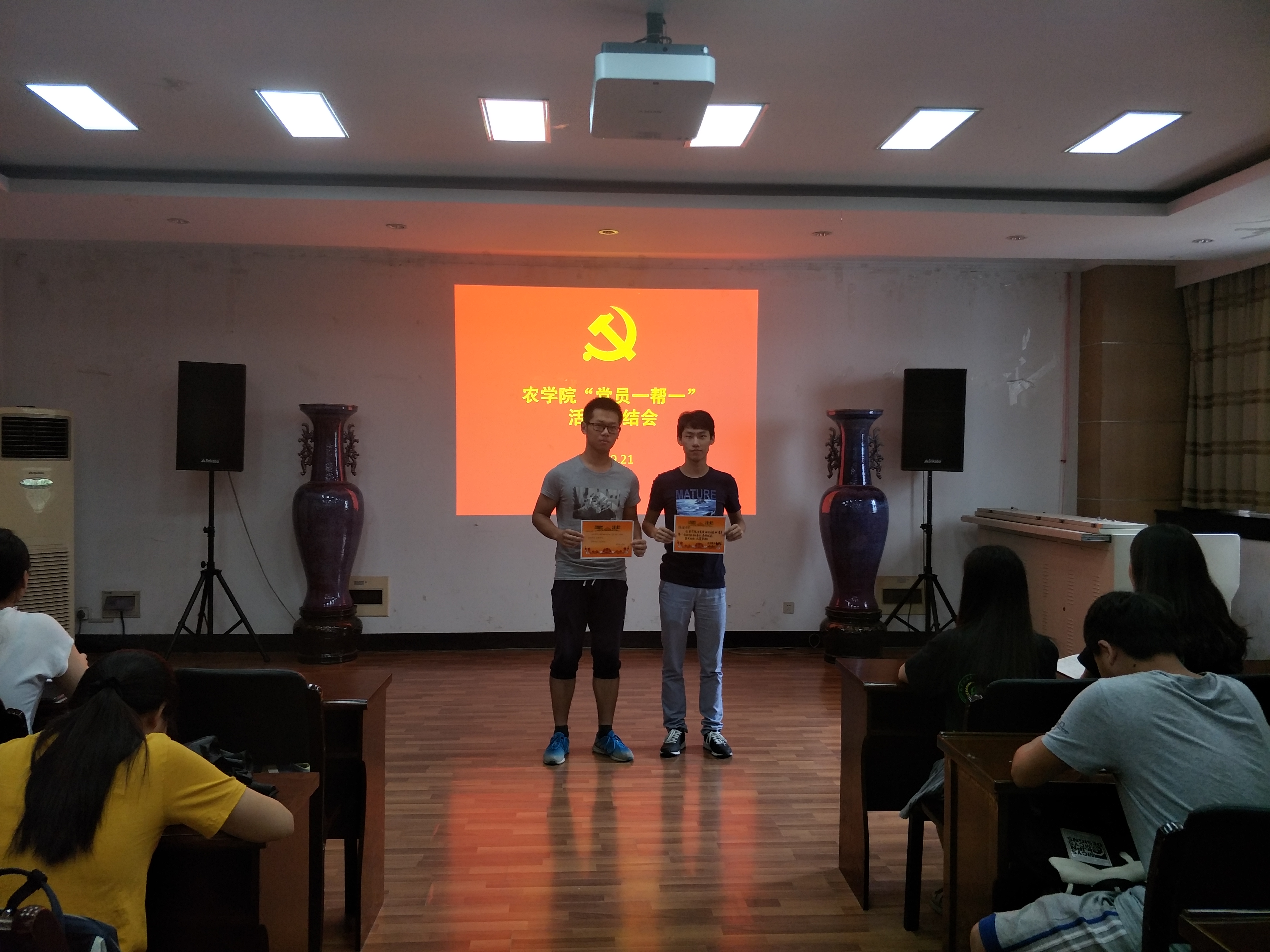 会上,实践部部长首先宣布了各预备党员在本期志愿活动中的考核情况,并为考核结果优秀的预备党员以及对应的帮扶对象颁发奖状。