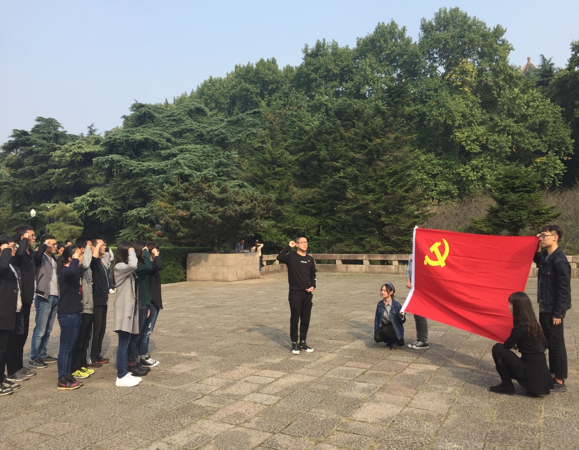 在雨花台烈士群像前,分党校组织举行了2017年6月新发展预备党员的入党宣誓仪式,农学专业二党支部支部书记仲开泰领誓。阵阵激昂的宣誓声,每位同学都用发自内心的声音抒发对党忠诚的决心,面对着党旗,大家接受了一次身心的特殊洗礼。