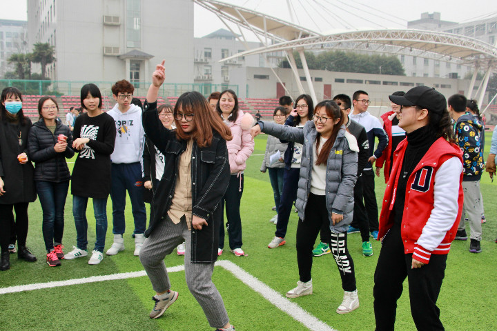 活动现场还巧妙设置了现场pk环节,同学们用比赛所得的橙子与主席团成员进行游戏pk,以获取更多的奖品。同学们更是展示了自己的舞蹈才能,在音乐中进行斗舞游戏。
