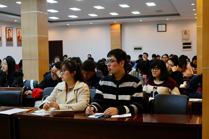 第一环节,黄老师向参加讲座的同学说明四六级考试成绩的重要性,强调四六级成绩是看排名分的,一般用人单位都非常重视应聘者的六级成绩。第二环节,是简单的书面语水平测试,让大家大概的了解一下当前自己的英语水平,并说明了大学生的英语水平大多是随着年级的增长呈不同坡度的下降趋势,告诫大家过四六级要趁早。第三环节,黄老师用幽默的语调和丰富的肢体语言向大家分析讲解了四六级考试的题型和应对策略。关于写作要选段与段之间空行的方式,平时要选用合适的笔、答题卡和时间来练习写作,最好是养成下午两点钟写作的习惯,而且中间一段的连接词等关键词的首字母最好加粗等等;听力由于只听一遍,所以黄老师强调我们在听听力的时候要注意舍得,不要走神和有强迫症;对于阅读翻译题,要根据分值选择正确的答题顺序:先做“大头”传统的阅读理解,之后做匹配题,顺着阅读的语感再将翻译题写出来,最后再做十五选十,这种做题技巧是在有限的时间内拿高分的好方法。第四环节是抽奖发四六级资料。