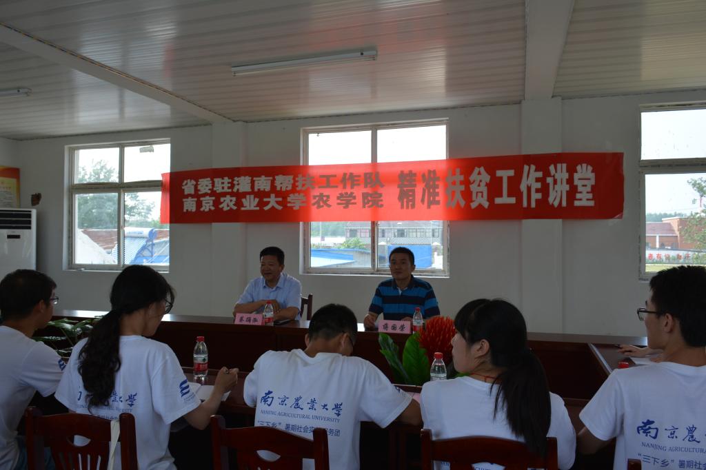 10日下午,江苏省委驻灌南帮扶工作队为实践队员开展了精准扶贫工作讲堂。灌南县委副书记、省委驻灌南帮扶工作队队长蔡踊泓主讲,百禄镇党委书记蒋国荣主持,驻村第一书记张亮亮、当地部分大学生村官以及调研团全体队员出席本次讲堂。讲堂上,蔡书记详细地介绍了灌南县的基本情况,从贫困的定义、脱贫的目的、扶贫的措施以及扶贫工作的开展四个方面对精准扶贫工作进行了汇报。蔡书记介绍到,扶贫队伍本着“三清五熟”的工作原则,牢记“用心学习调研、聚焦主要任务、增强发展本领、锤炼优良作风”的工作要求,将扶贫工作与现代农业机械化、新兴产业、后方单位资源和传统种植与养殖业相结合展开。截止2016年,全县28个省定经济薄弱村有半数以上的村集体经济达到18万元,有5个村通过省验收整村脱贫,2.1万人摘掉了贫困的帽子。随后,实践队员来到高湖村湖丰谷物种植合作社,参观了现代化育秧基地。合作社自成立以来,大力追求全面实现专业化、规范化和订单化的目标,目前已完成几十单个人以及单位的育秧订单。最后,大棚管理人员胡师傅向队员们展示了全自动化的喷灌技术,并讲述了他工作的一日故事。
