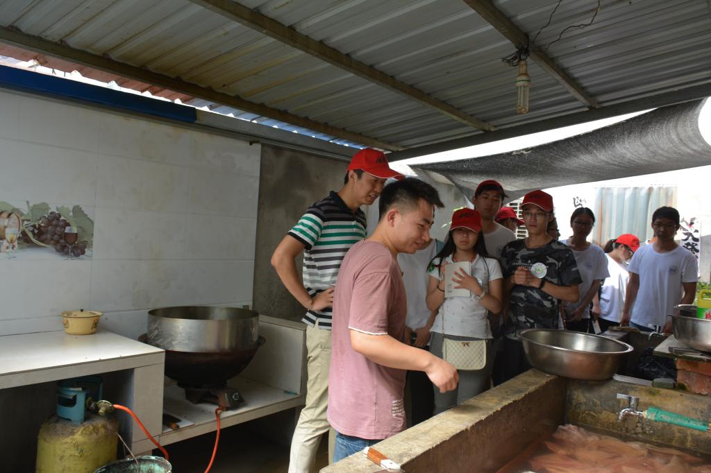 熏烤肉作为灌南县的特产之一,享誉盛名。13日上午,队员们参观了徐记熏烤肉作坊,徐伟占老板向队员们介绍了熏烤肉的生产过程以及保存方法,并邀请队员们品尝了美味的熏烤肉。