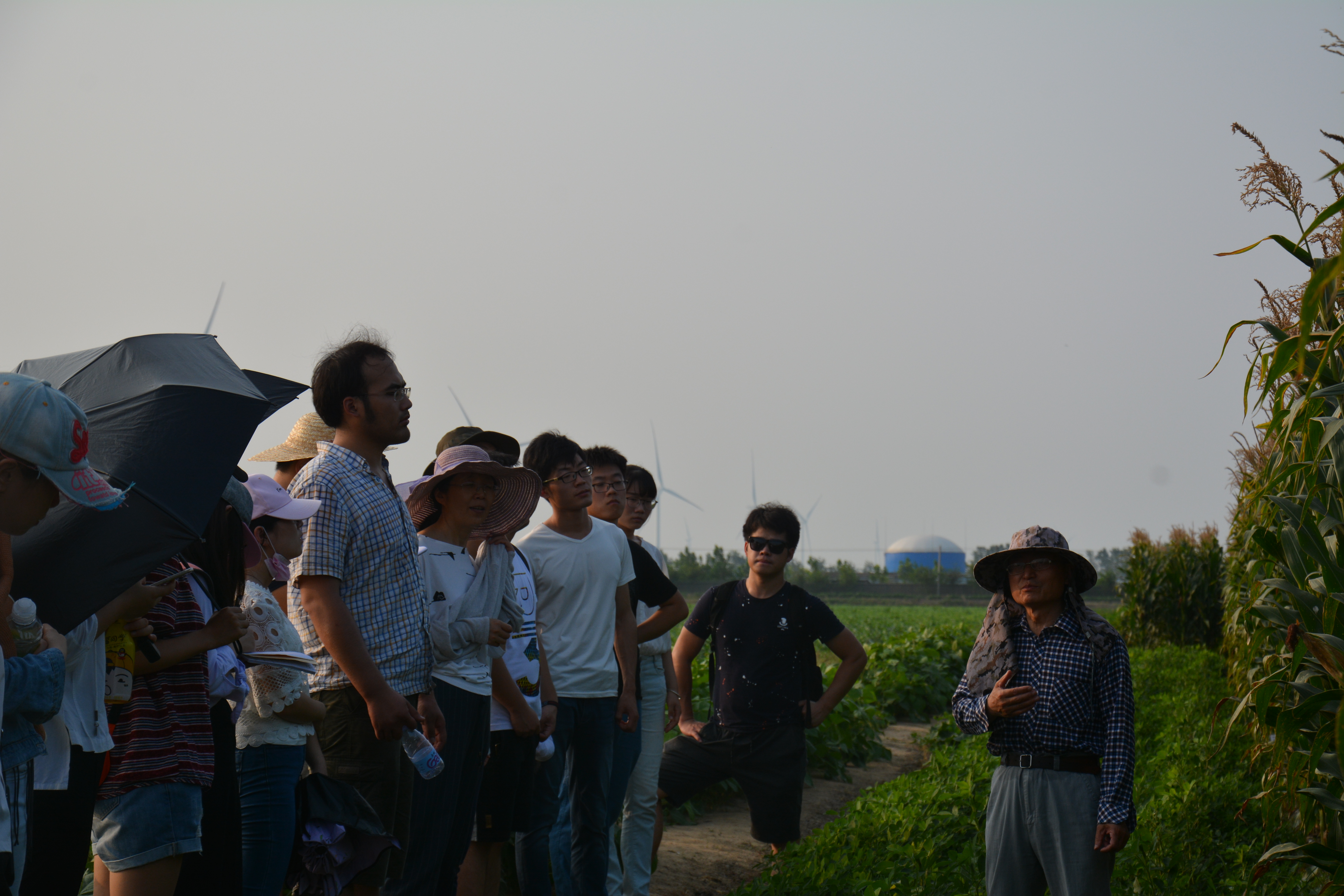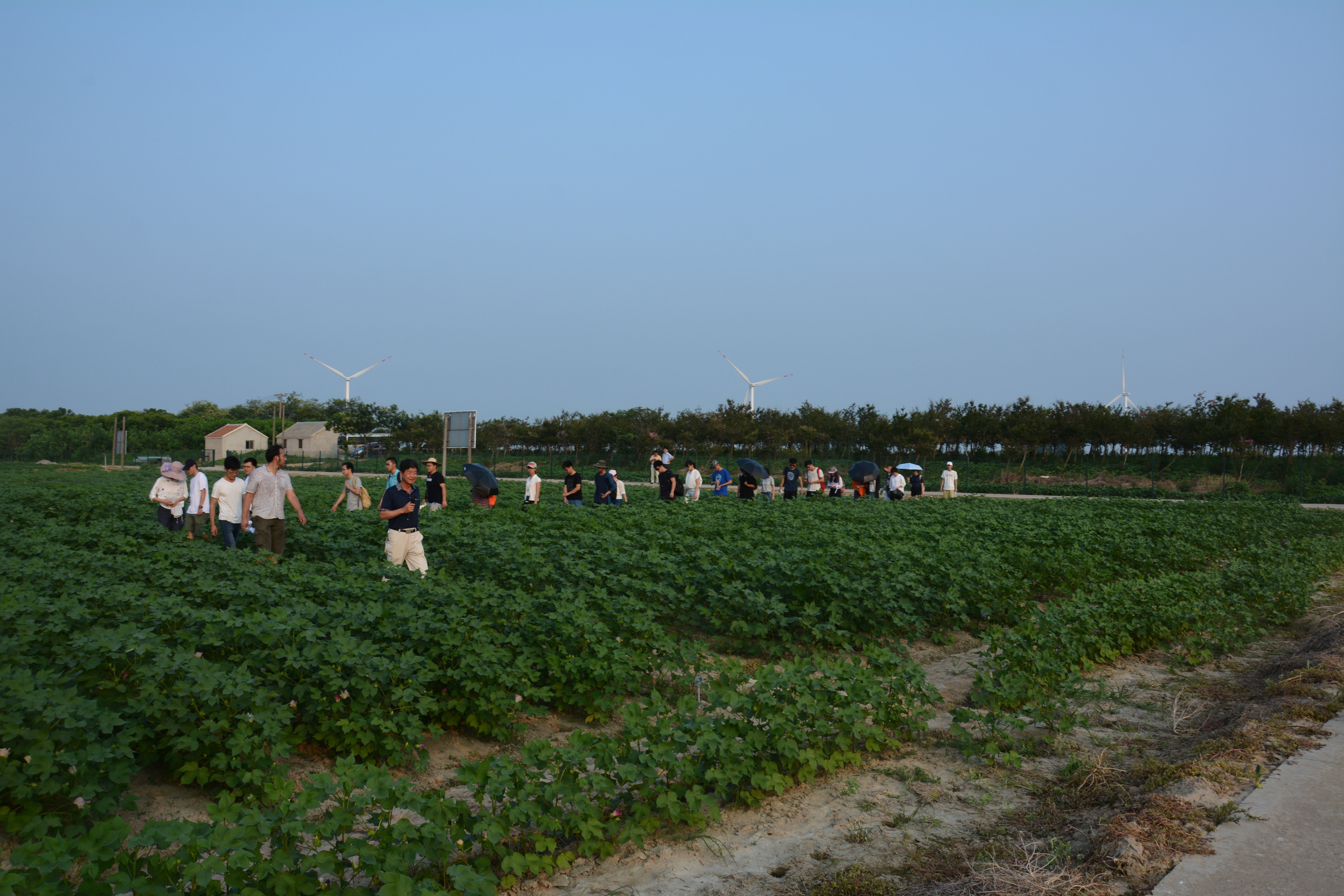 下午四点,在王宣山研究员以及盐城农委领导陈标、朱永歌的带领下,大家在基地现场参观水稻、玉米、棉花等作物的试验地,大家都对自己所在研究领域以外的其他作物有了进一步了解。